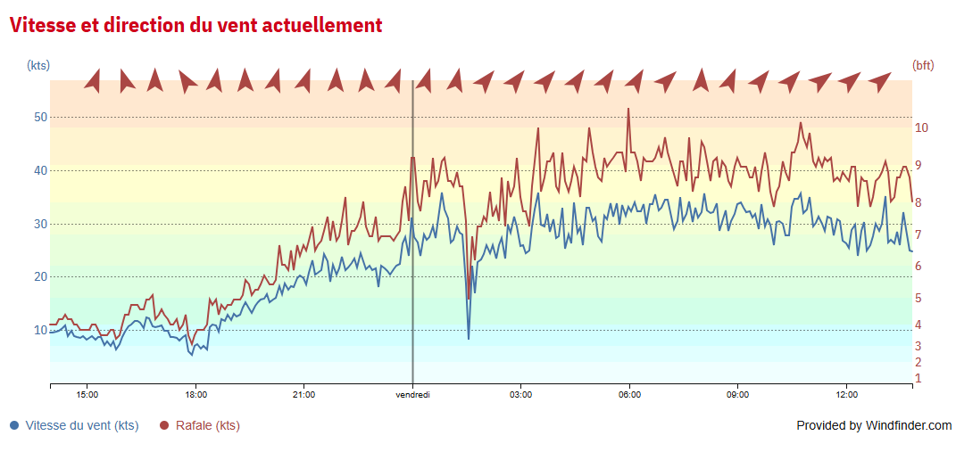 Cela souffle à Port Nemours Rafales à plus de 50Nds (force 10) dans la nuit de Jeudi 8 Janvier au Vendredi 9 Janvier